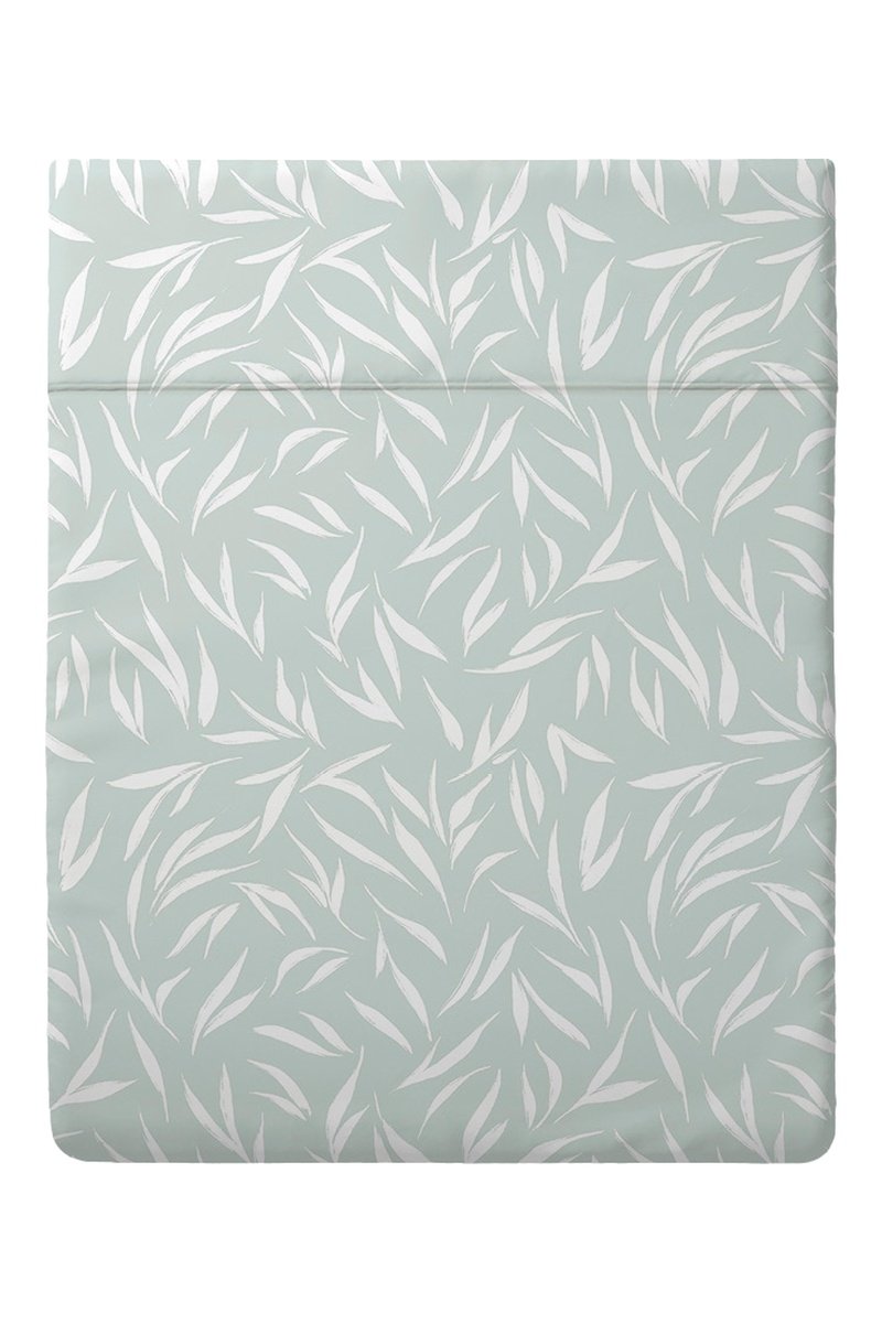 Lençol liso em cetim de algodão 80 fios/cm² Olea europaea - Verde-claro e branco