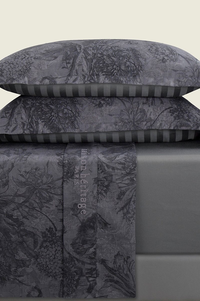 Conjunto de lençóis em cetim de algodão 80 fios/cm² Jardin botanique - Cinzento-escuro