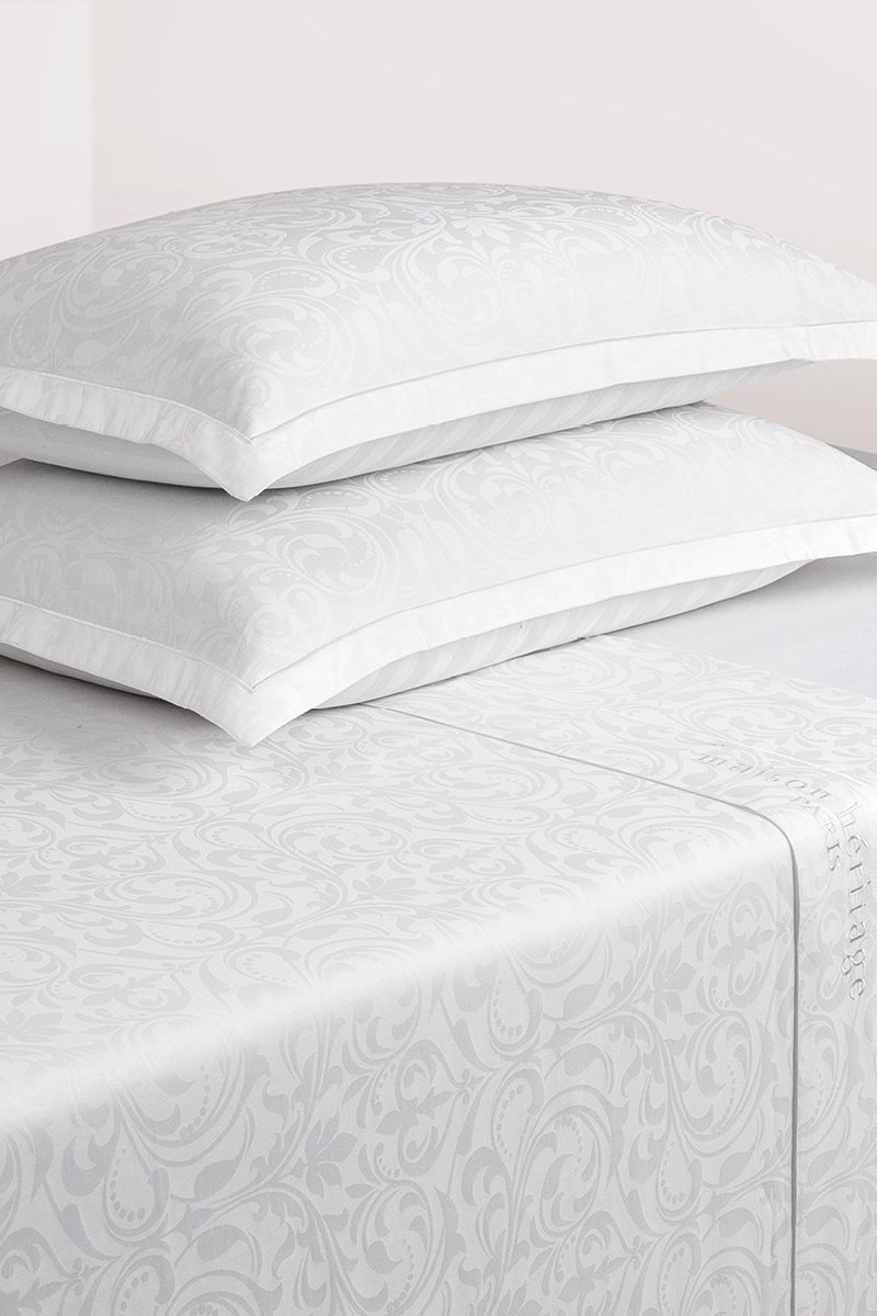 Conjunto de lençóis em cetim de algodão tecido 120 e 80 fios/cm² Baroque - Branco