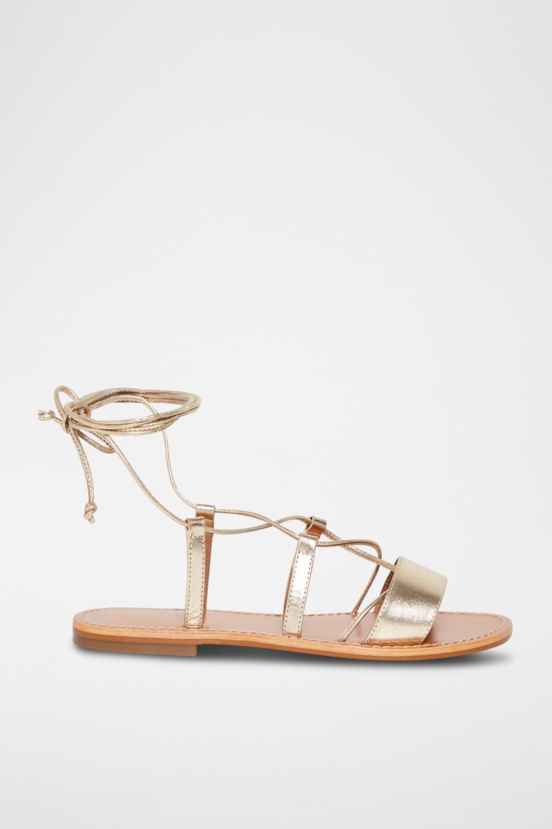 Sandálias romanas em couro de cabra Cobalt - Dourado