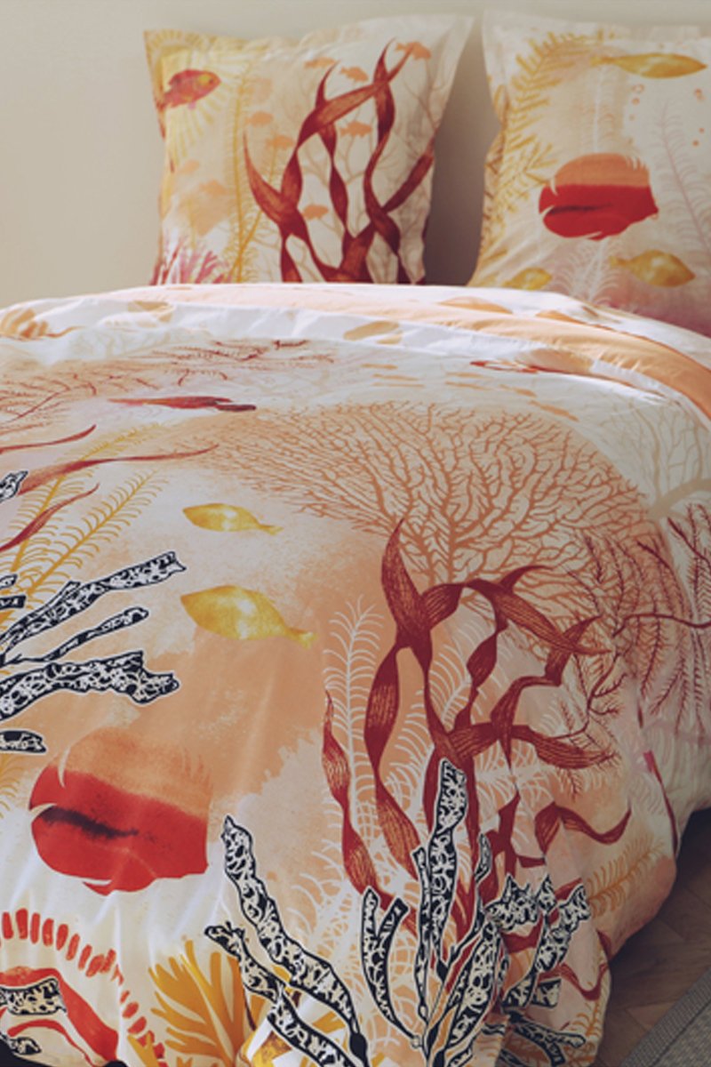 Conjunto de edredão em algodão 57 fios/cm² Noumea - Branco e laranja