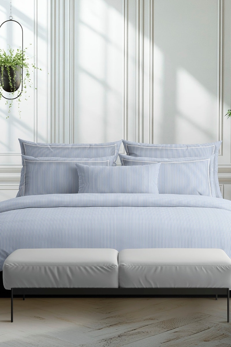 Conjunto de edredão em percal de algodão 80 fios/cm² Dauphine - Azul-celeste
