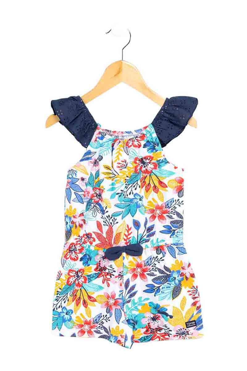 Macacão de mangas curtas com folhos em bordado inglês.