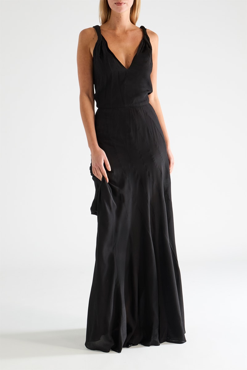 Vestido comprido em seda - Preto - Raey