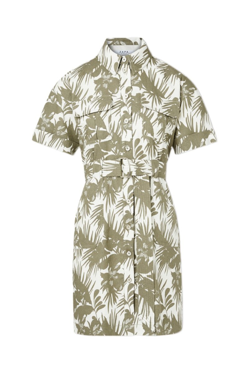 Vestido curto em linho - Verde