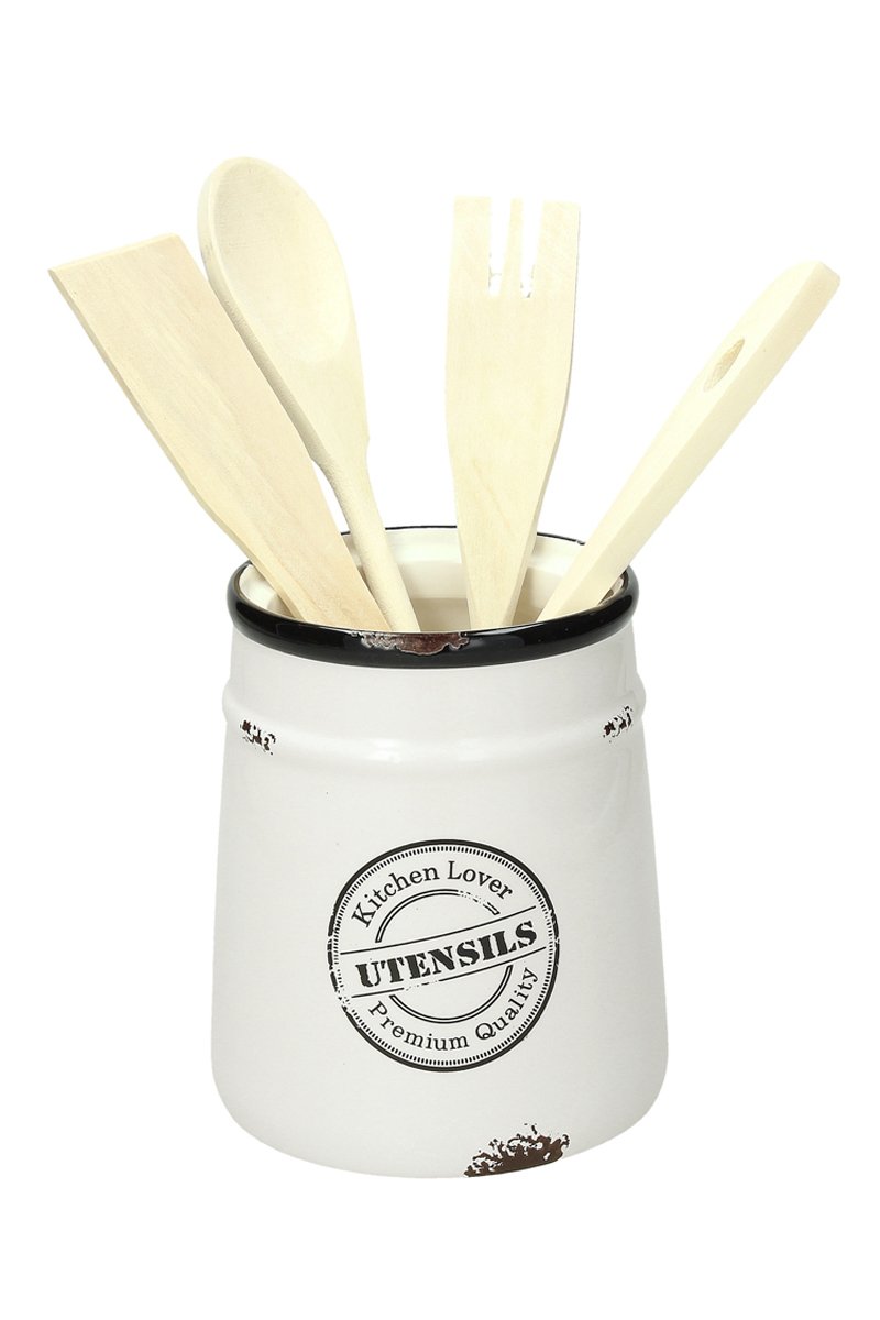 Pote e utensílios em cerâmica e madeira Urban Chic - 12 x 22 cm