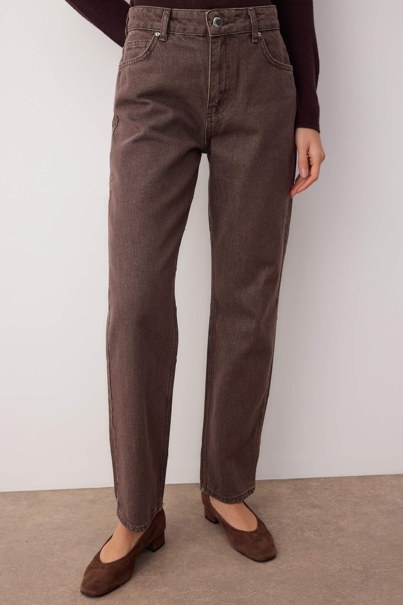 Calças de ganga de cintura alta - Castanho