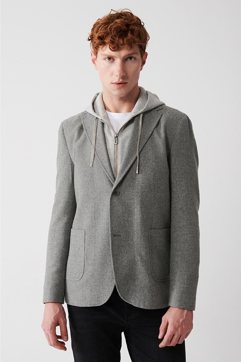Casaco de lã - Cinzento-claro