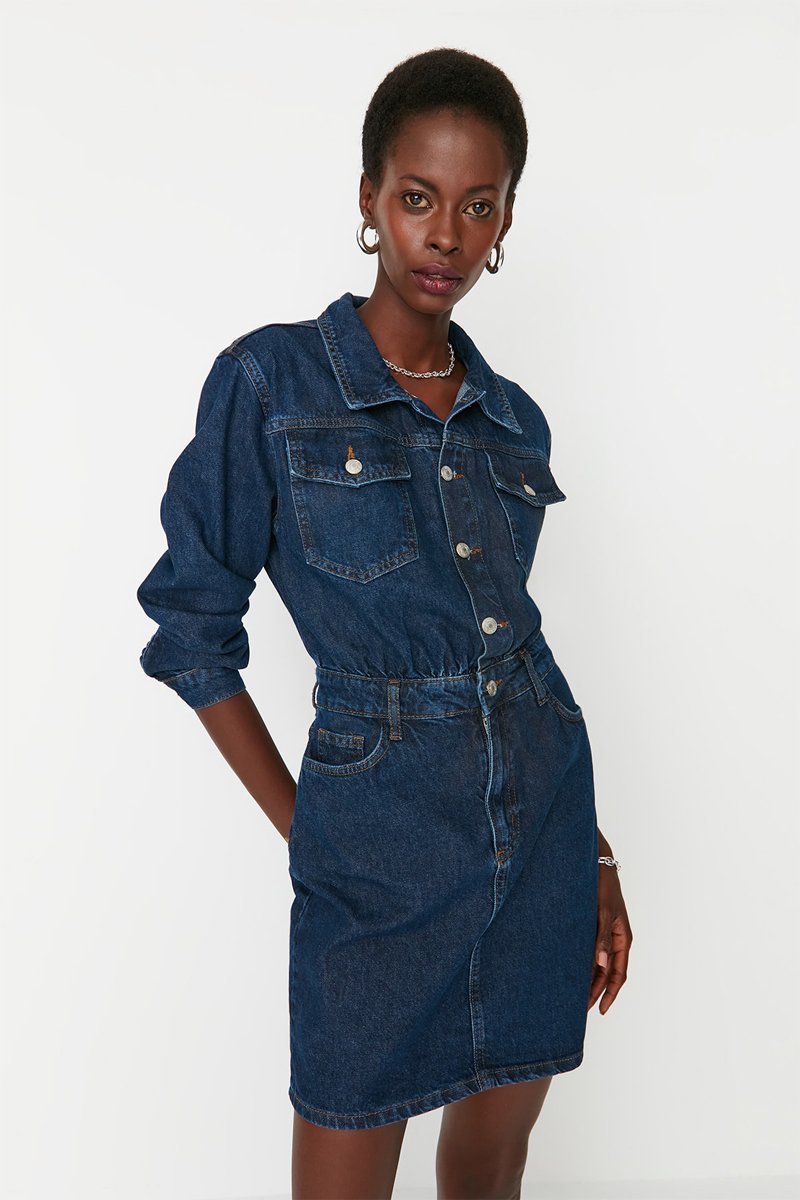 Vestido direito de ganga - Azul-marinho
