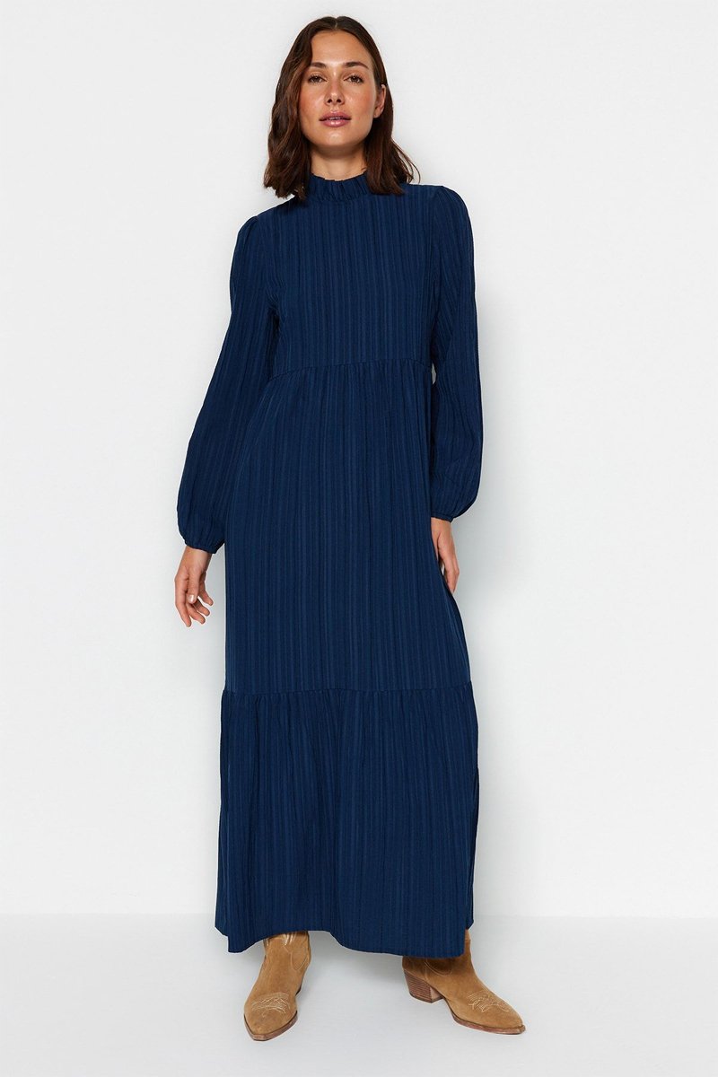Vestido comprido de mangas compridas.