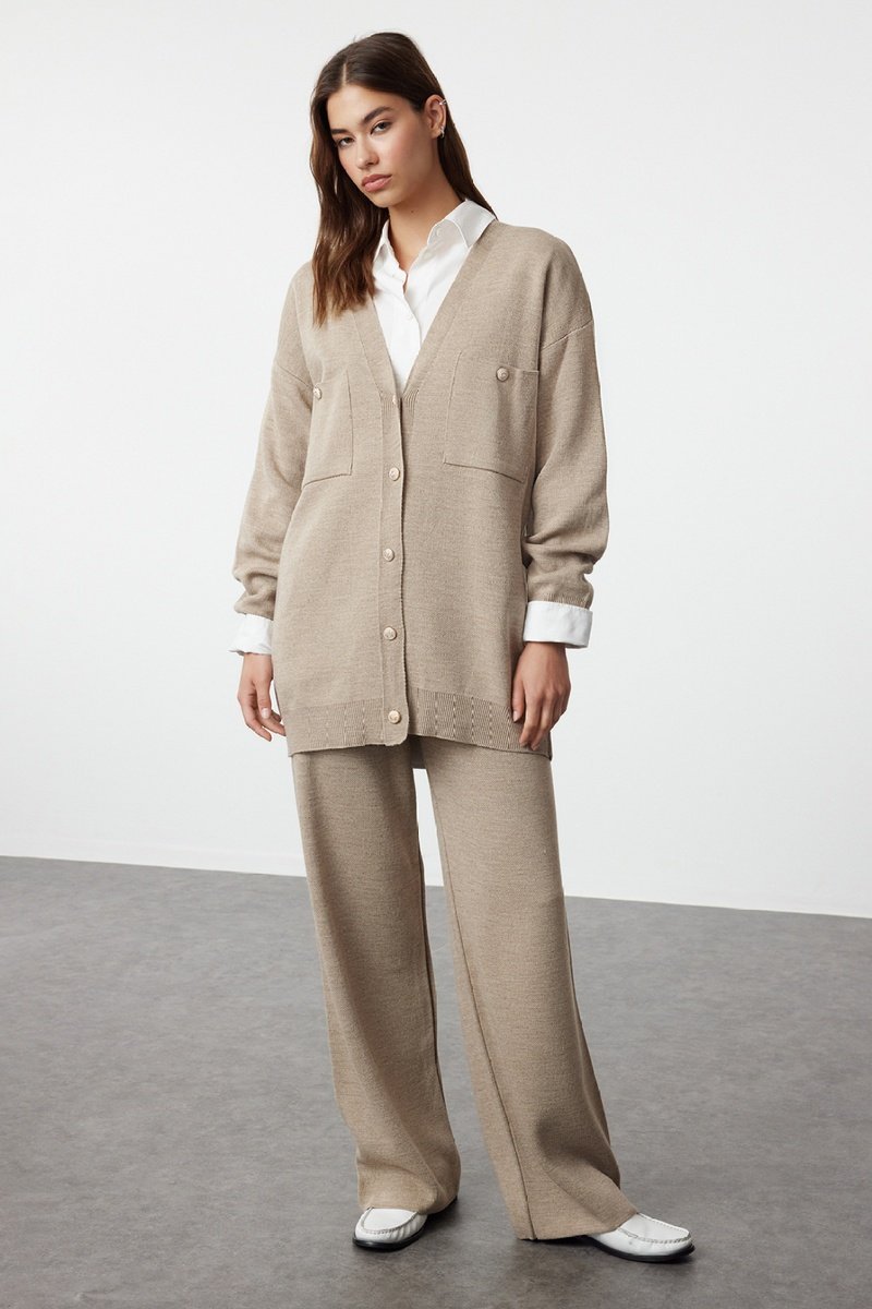 Casaco de malha e calças regular - Bege