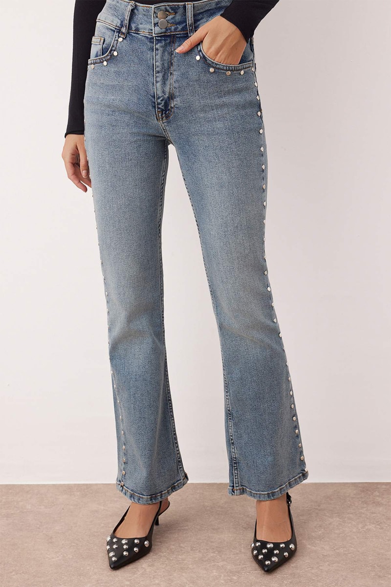 Calças de ganga flare.