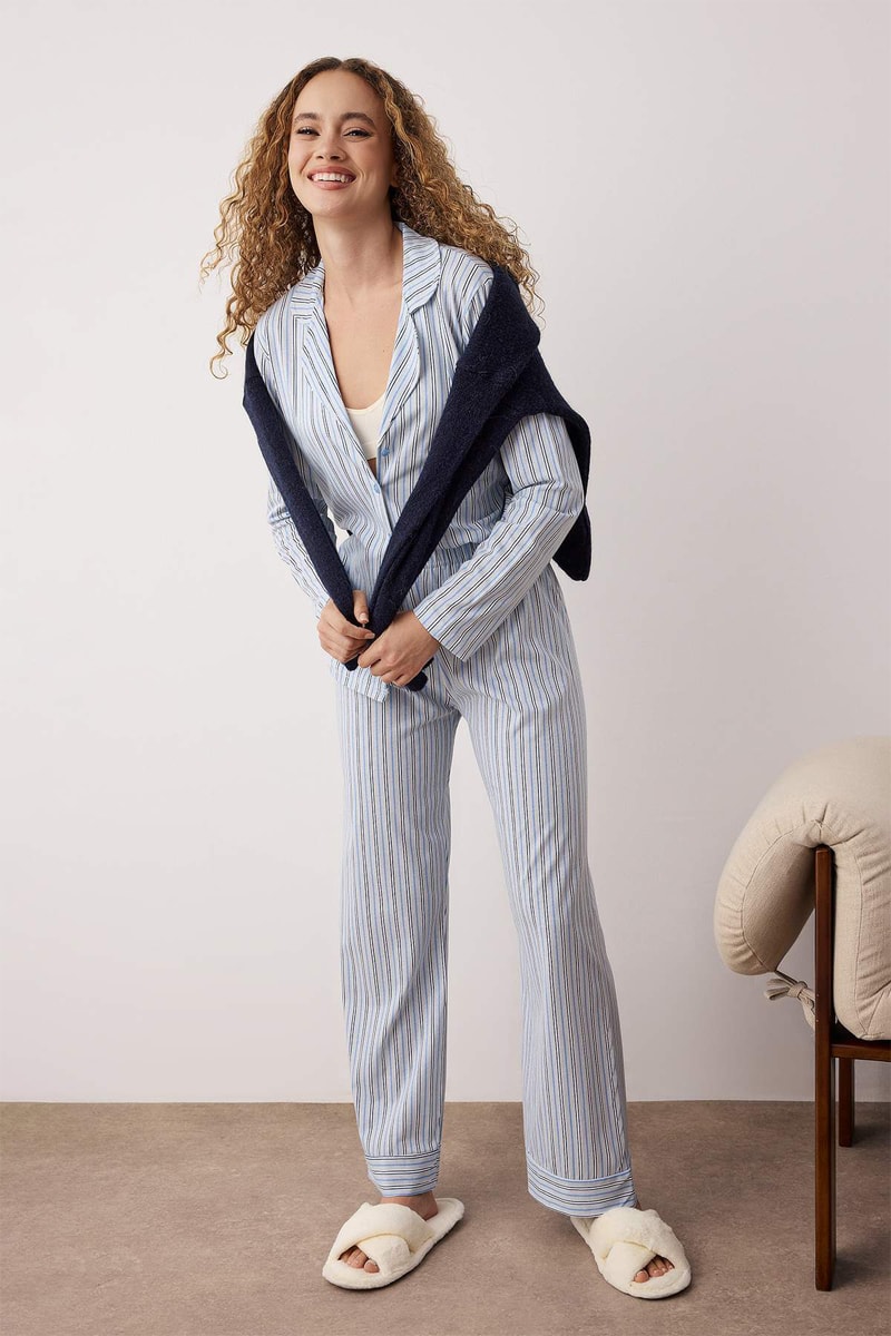 Pijama com estampado às riscas com: