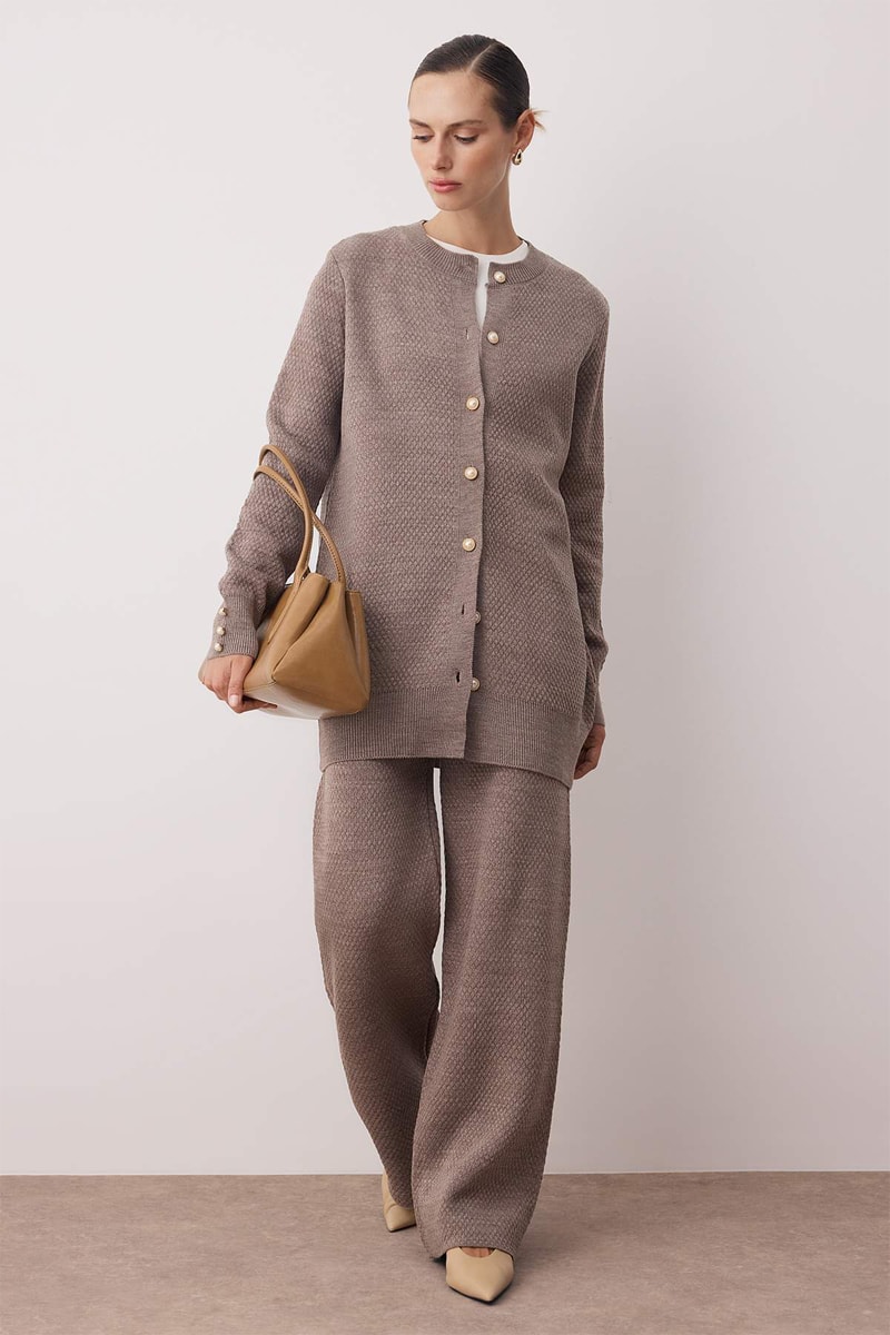 Casaco de malha comprido e calças wide legs - Toupeira mesclado