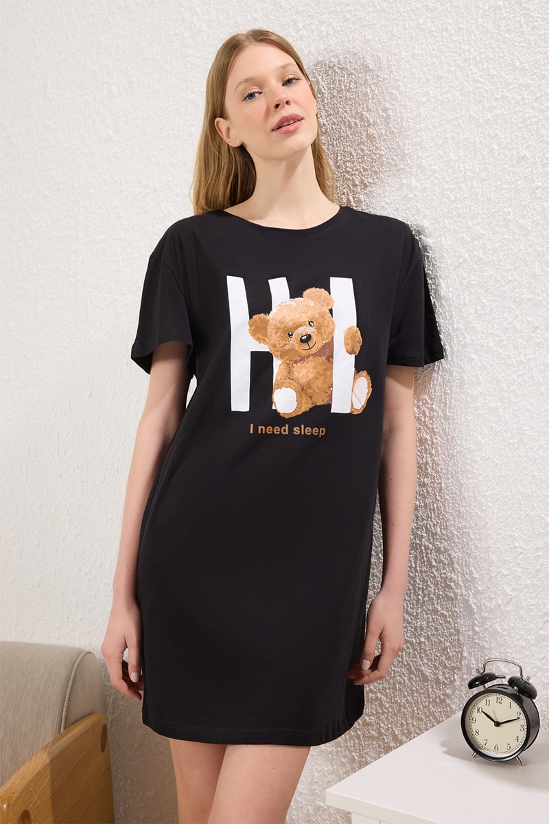 Camisa de dormir regular - Preto