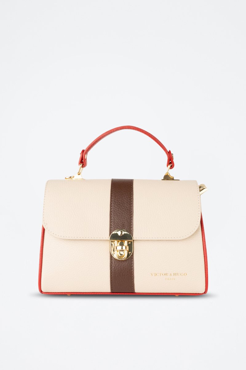 Mala de couro Giverny - Bege, dourado, castanho e vermelho