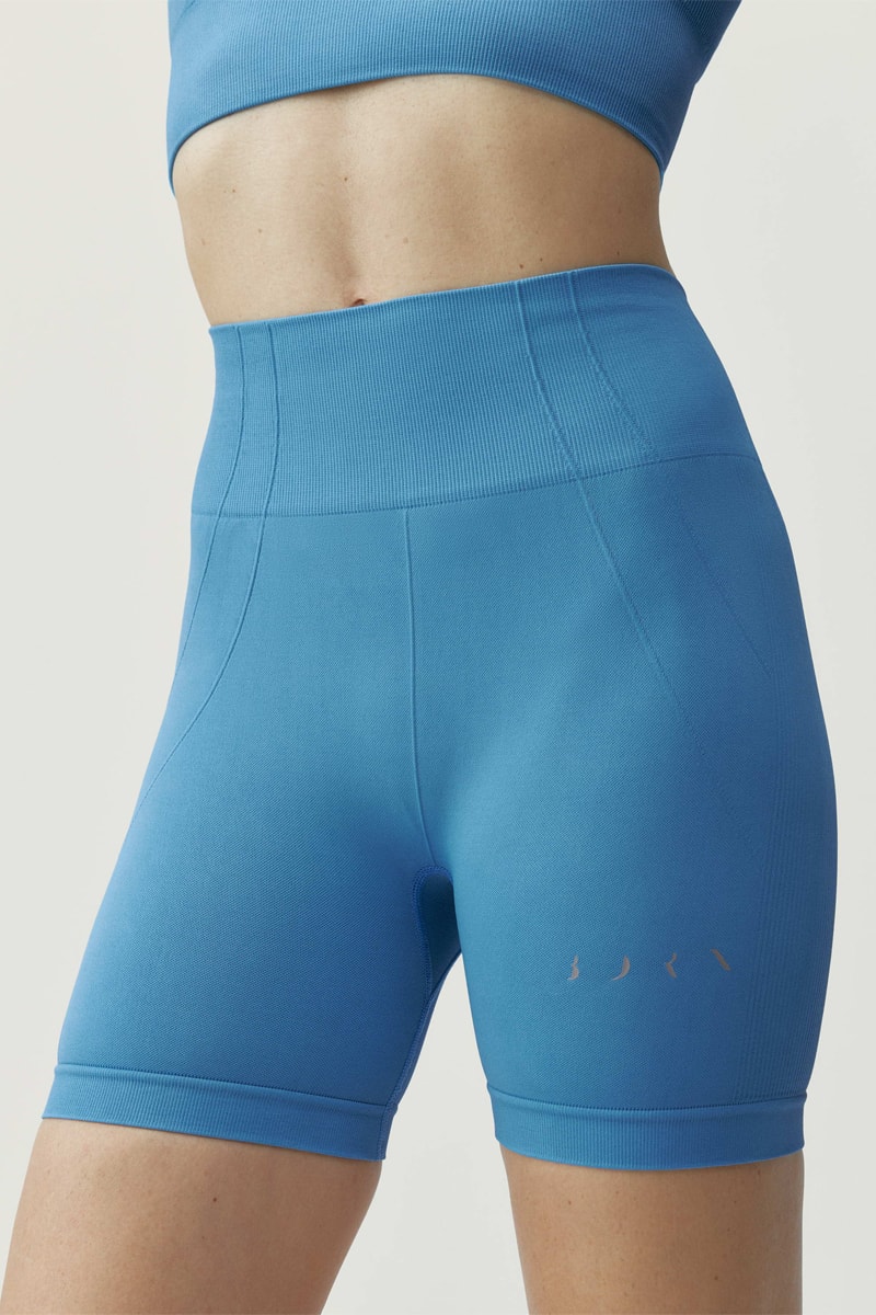 Calções ciclista de cintura alta Urdhva - Azul-celeste