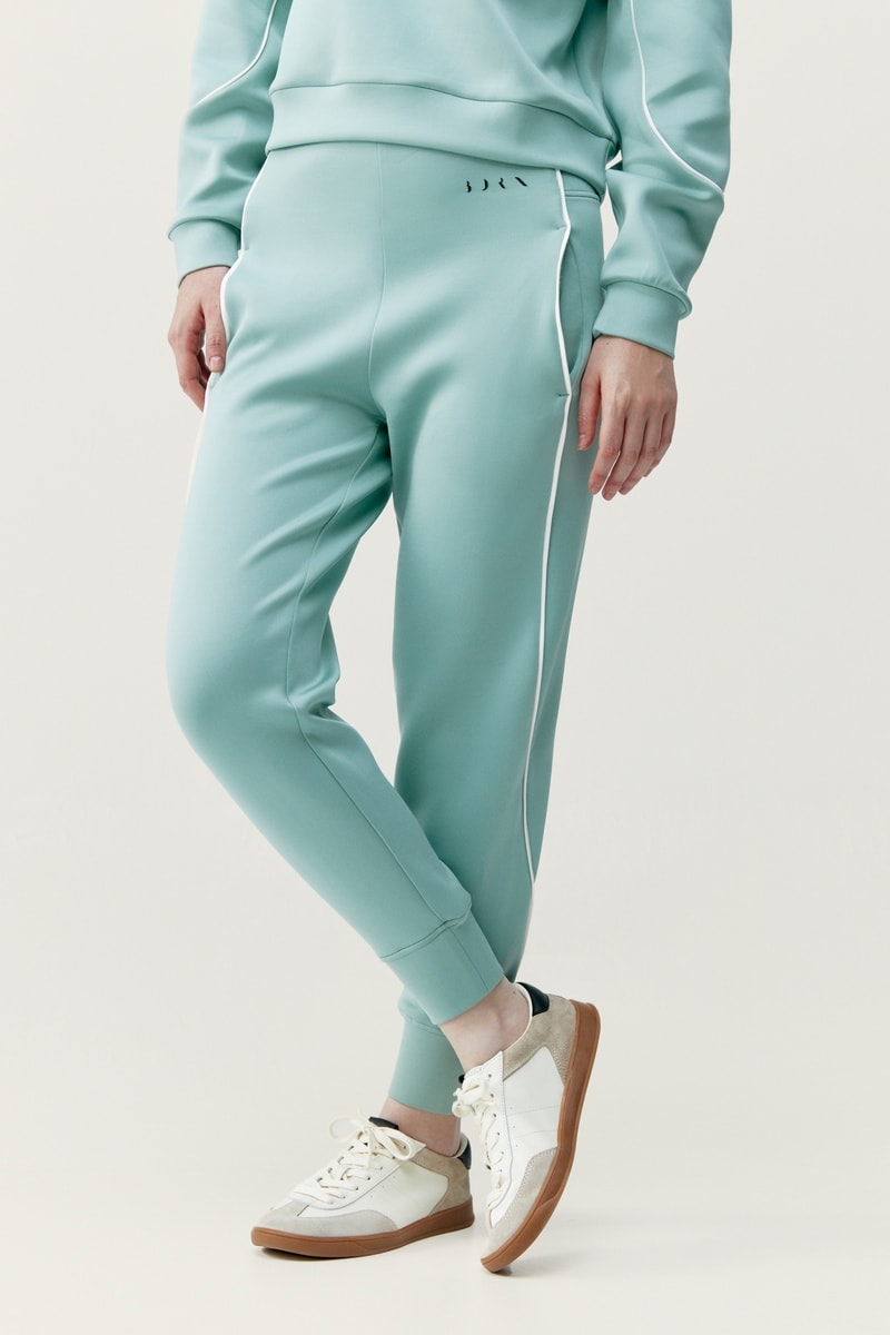 Calças amplas de cintura alta Agda - Verde-água