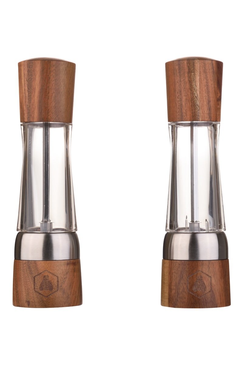 2 moinhos de pimenta e sal em madeira de acácia e aço inoxidável.