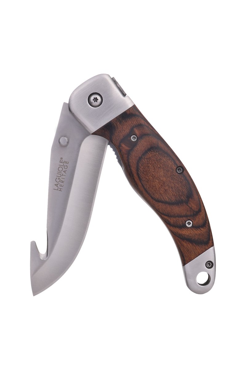 Faca dobrável em madeira de pakka e coffret de couro Heritage - Natural