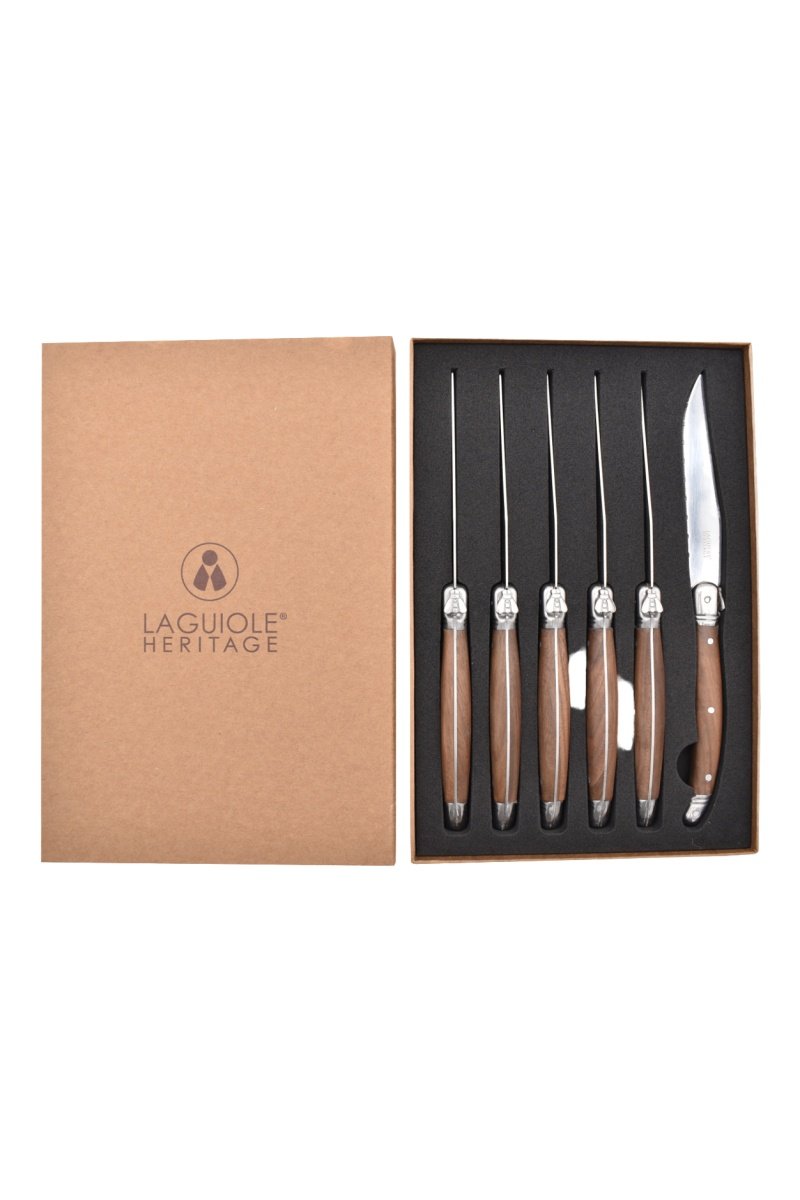 6 facas para carne em aço inoxidável e madeira de nogueira