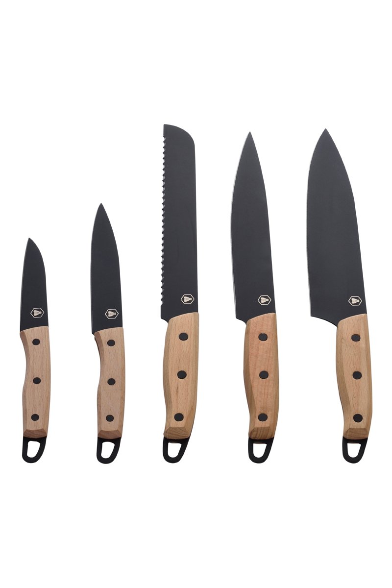 5 facas de cozinha em madeira de faia e aço inoxidável