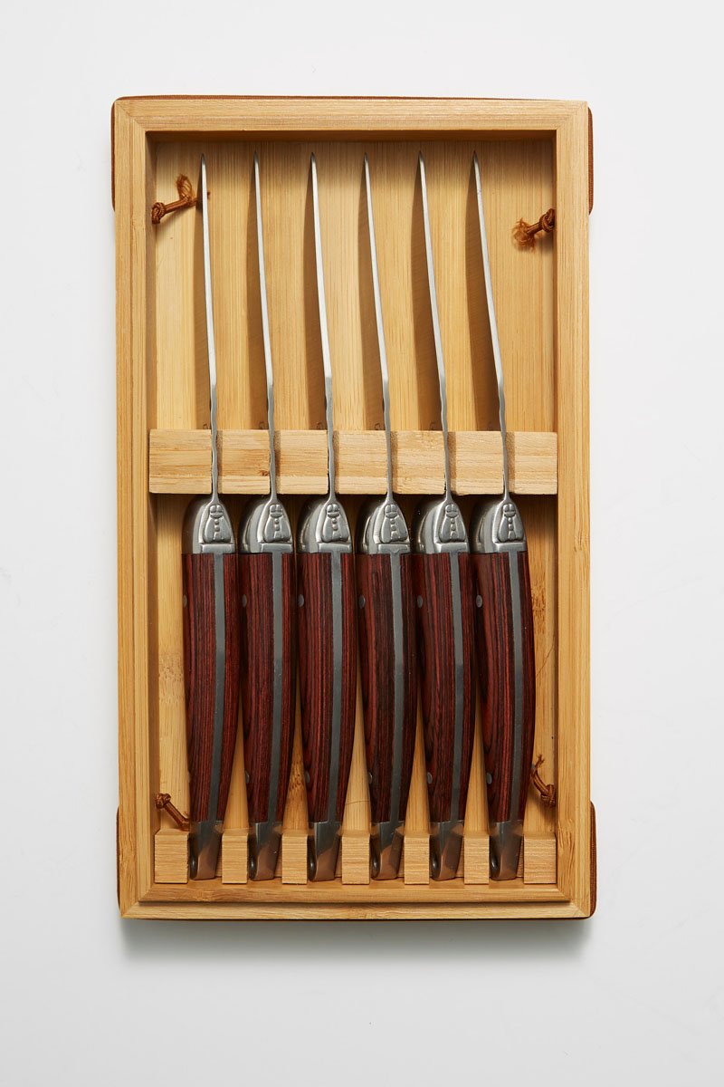 6 facas para carne de madeira de palissandro e aço inoxidável