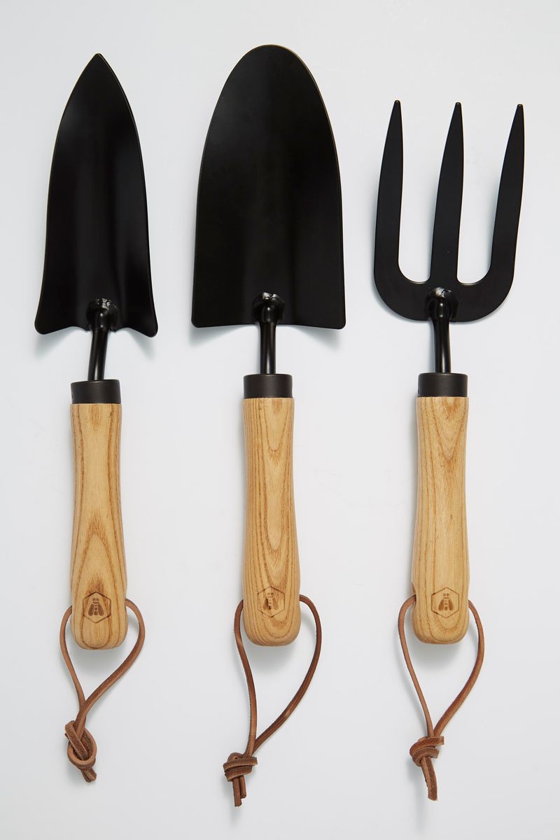 3 ferramentas de jardinagem em madeira de freixo