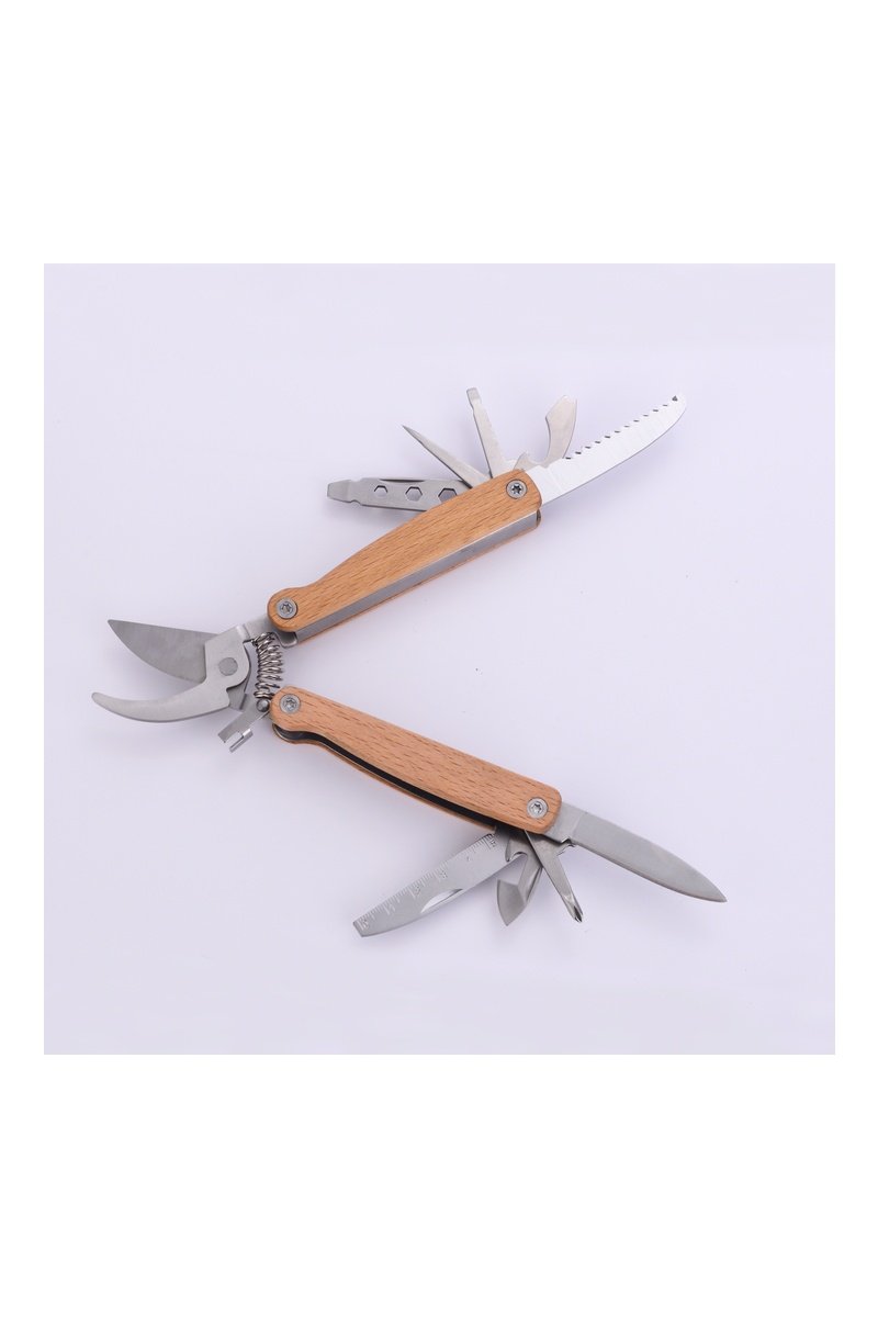 Tesoura multifunções 12 em 1 em madeira.