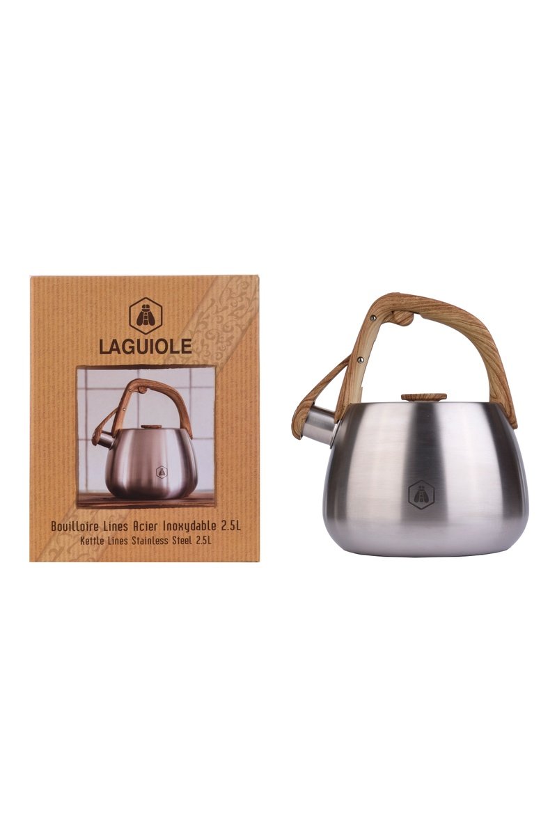 Um assobio sinaliza discretamente que a água está pronta, evitando qualquer sobreaquecimento ou esquecimento no fogão.