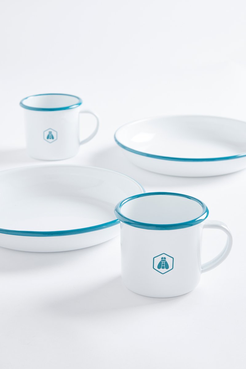 2 pratos e 2 chávenas para piquenique em aço inoxidável esmaltado