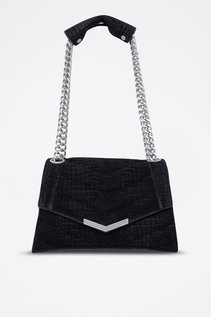 Mala de ombro em couro de vitelo - Preto - IKKS