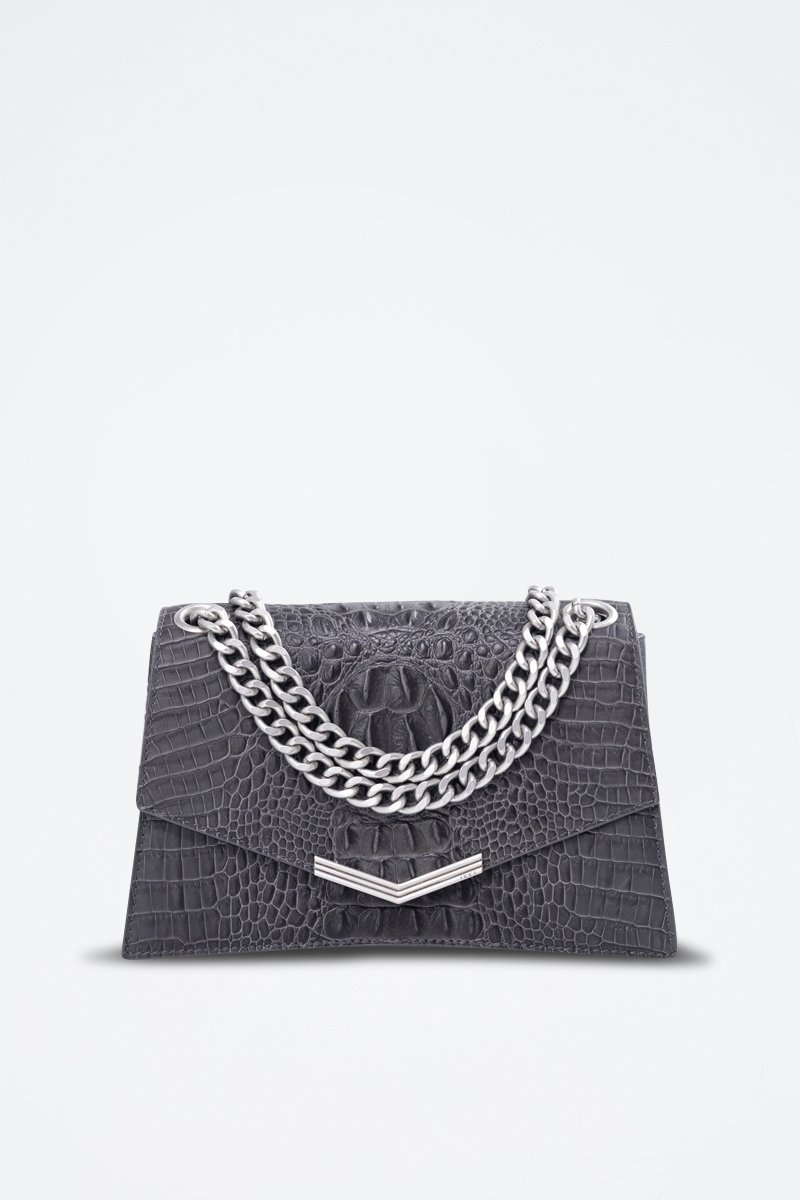 Mala de ombro em couro de vitelo - Antracite - IKKS