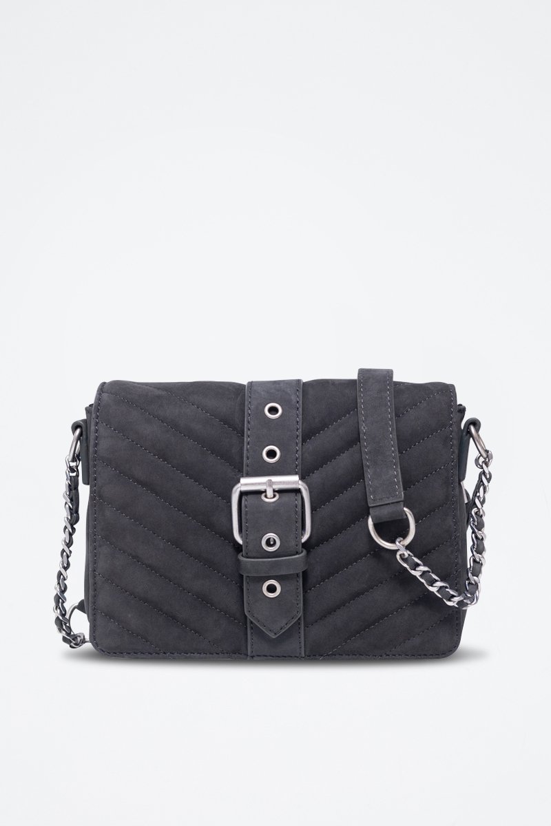 Mala a tiracolo de couro de vitelo - Antracite - IKKS