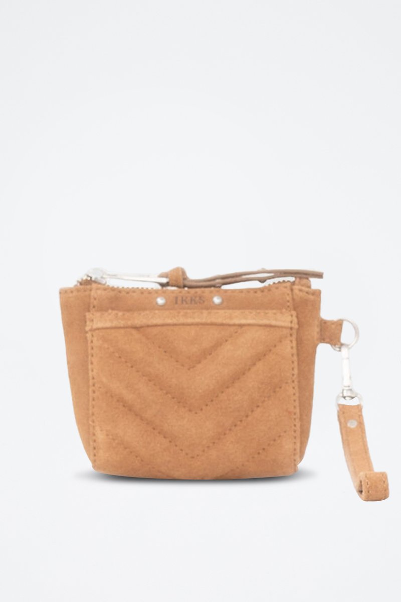 Efeito acolchoado, aplicação em metal e logótipo à frente.