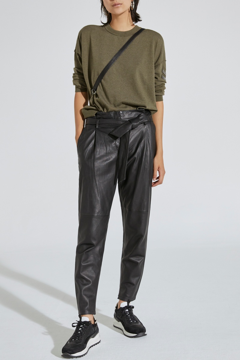 Calças em couro de cordeiro de cintura subida - Preto - IKKS