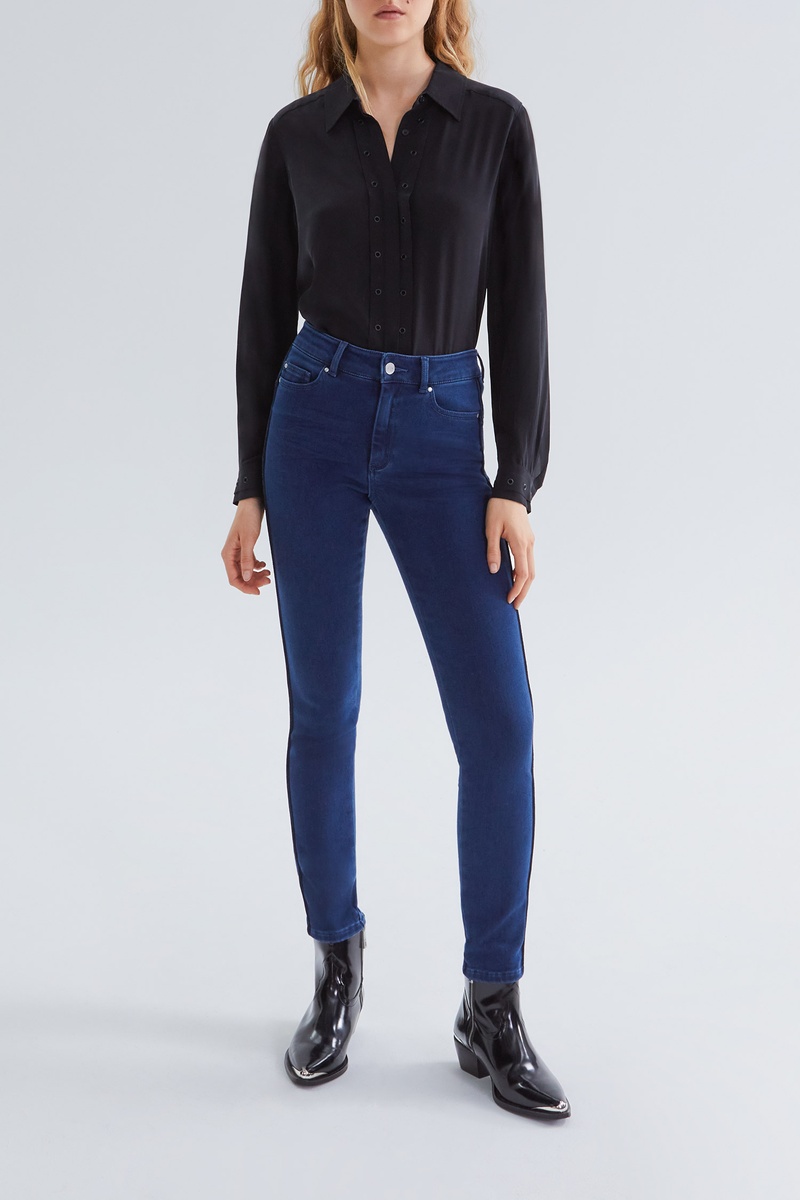 Composição: 64% algodão, 30% poliéster, 5% viscose e 1% elastano
