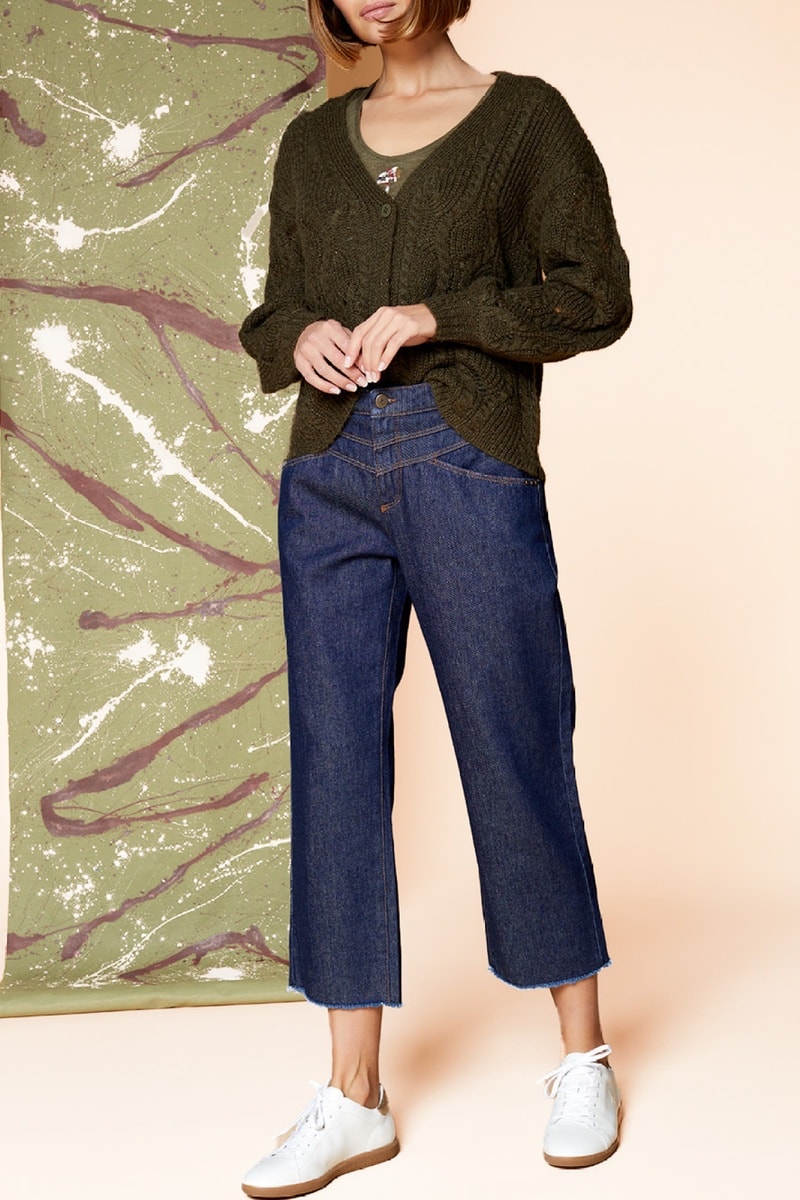 Calças de ganga direitas 7/8 de cintura alta - Azul-marinho