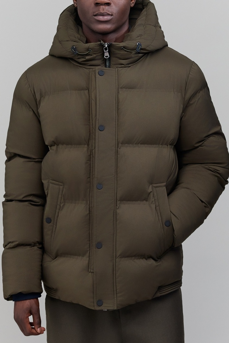 Blusão de capuz com atilhos de ajuste.