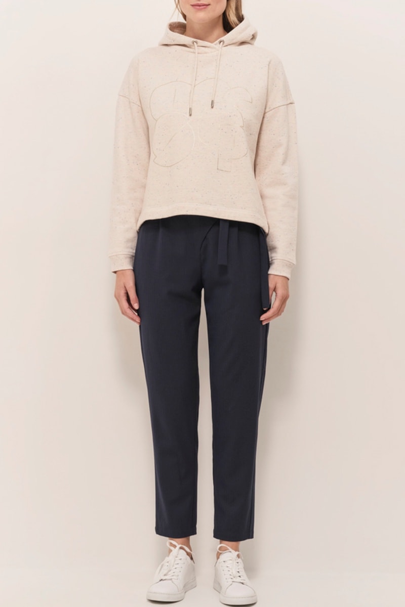 Sweat com capuz e atilhos de ajuste.