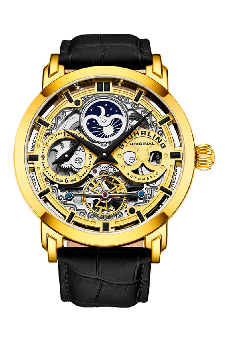 Relógio automático em couro Legacy - Função GMT - Preto e dourado