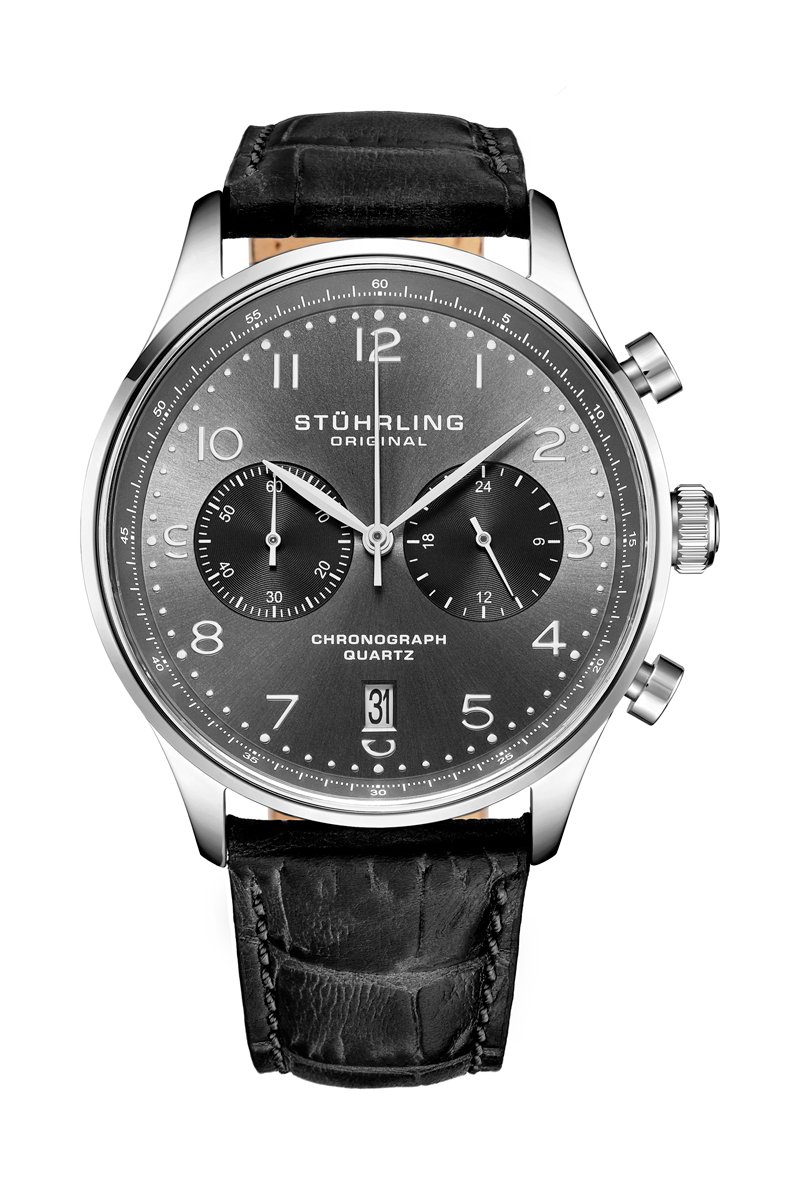 Relógio de quartzo em couro GR1-Q - Cronógrafo - Preto e prateado