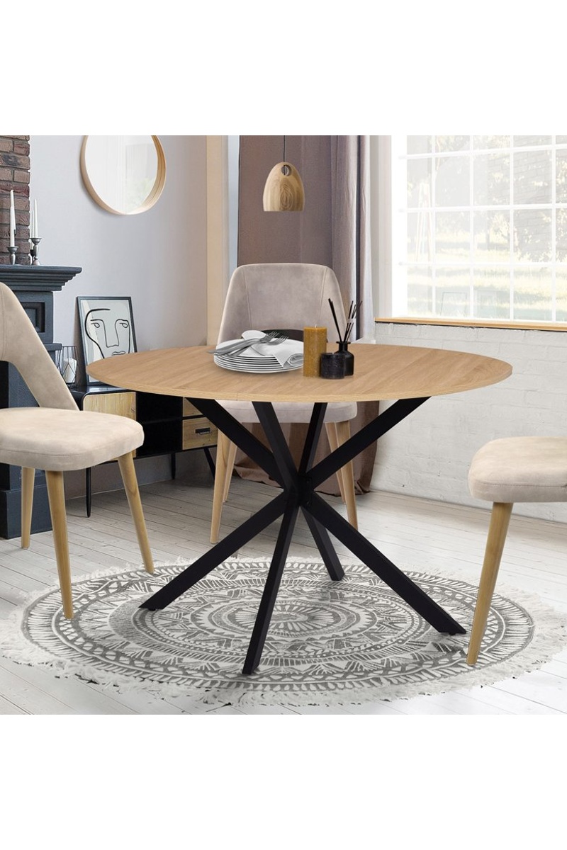 Mesa de jantar Soline - Imitação de madeira e preto