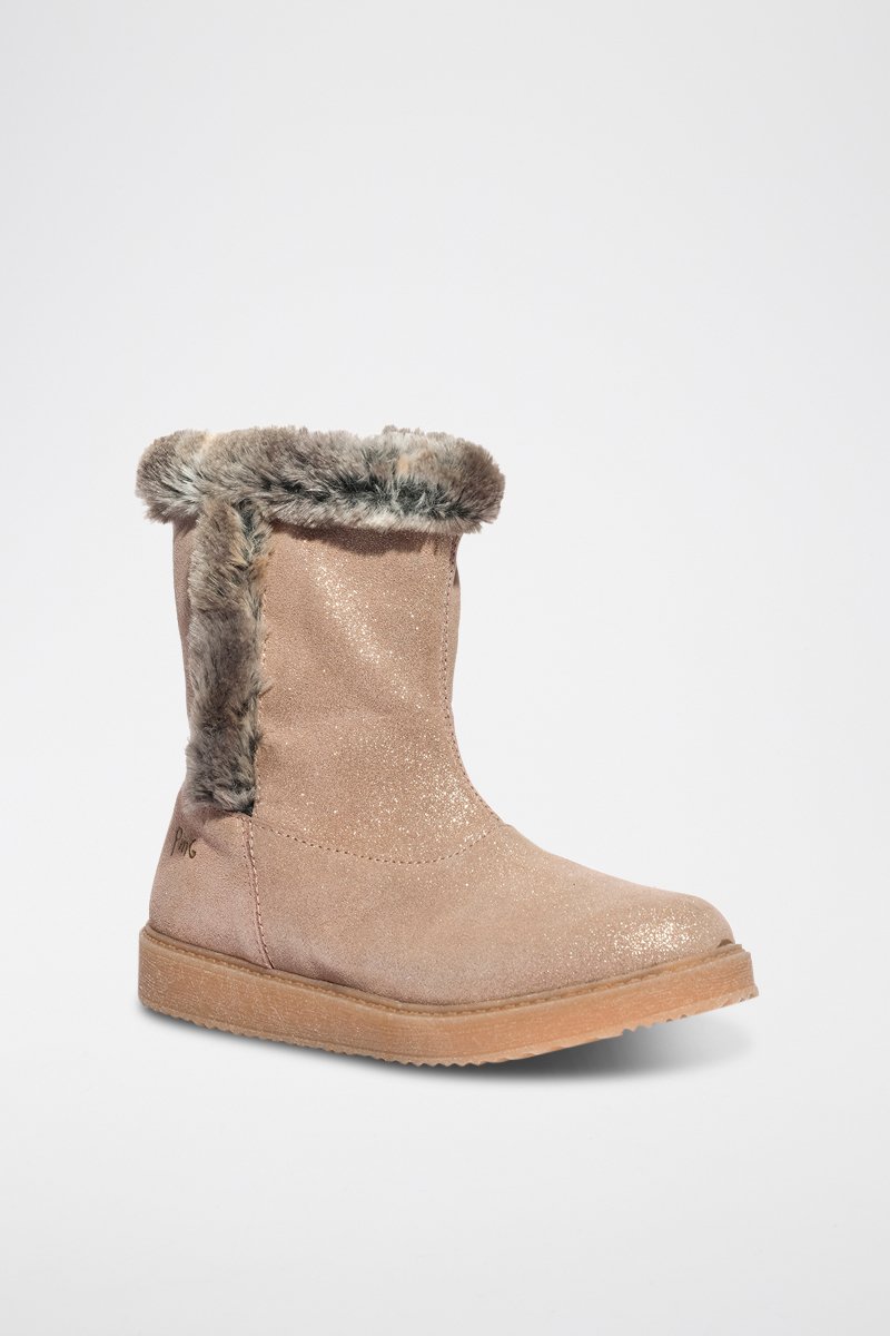 Botins forrados de couro com purpurinas.
