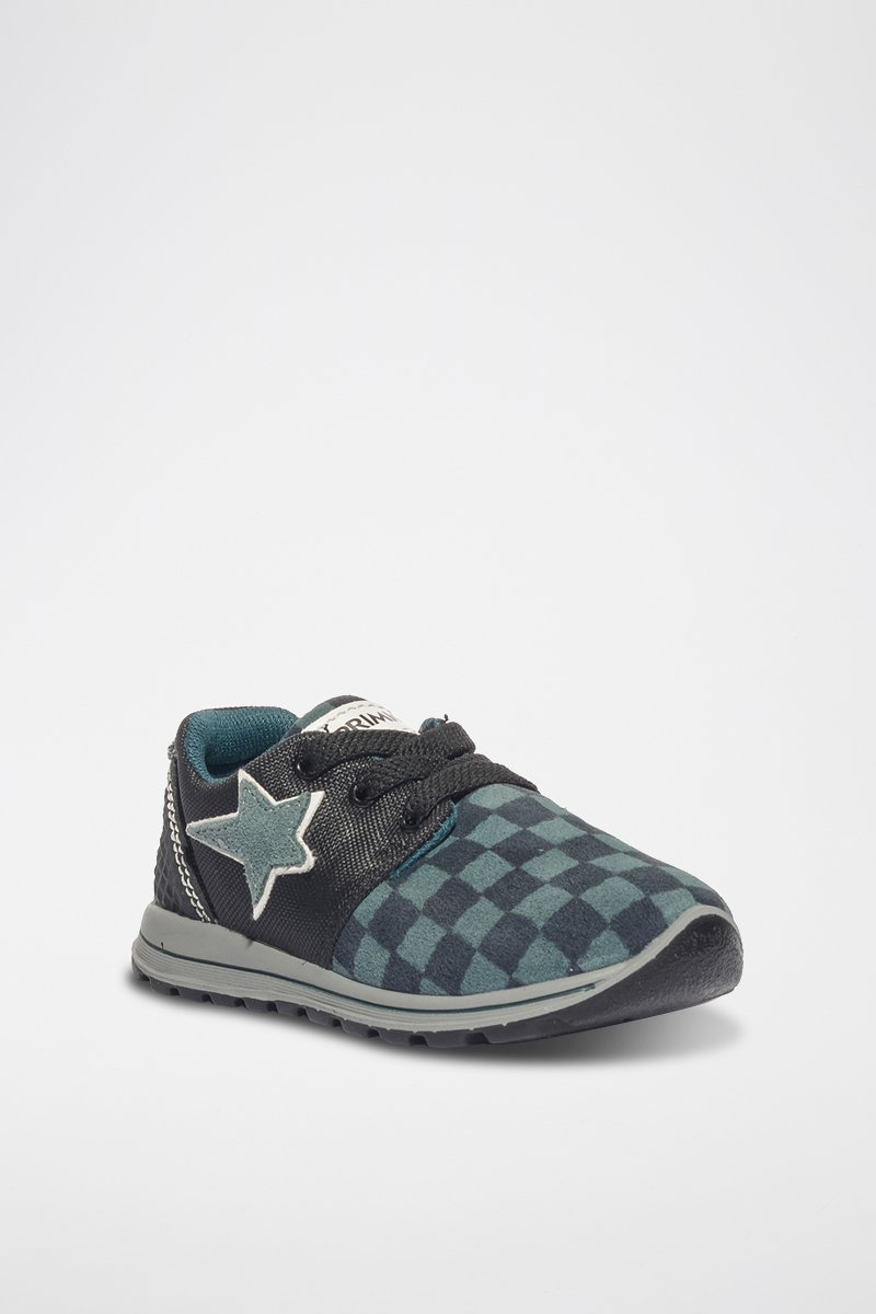Sapatilhas de nobuck Baby Tiguan - Verde-escuro e preto