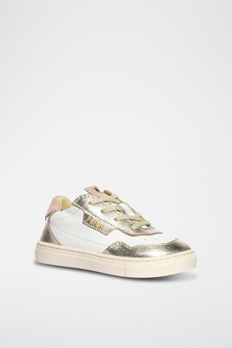 Sapatilhas de couro Baby Miami - Branco e dourado