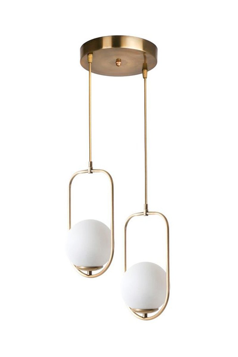 Candeeiro suspenso Ahu - Dourado e branco - 2 x 60 W