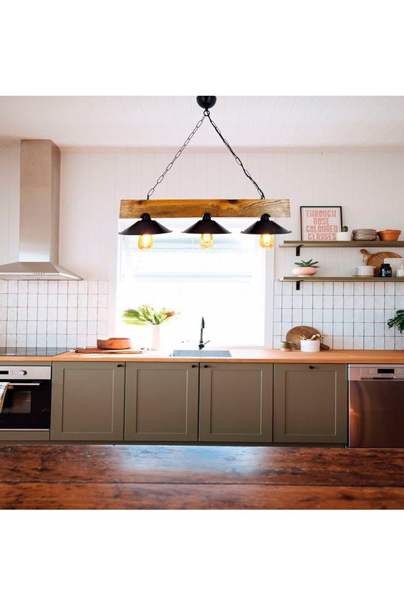 Candeeiro suspenso Üç Sapka - Natural e preto - Em pinho - 3 x 60 W