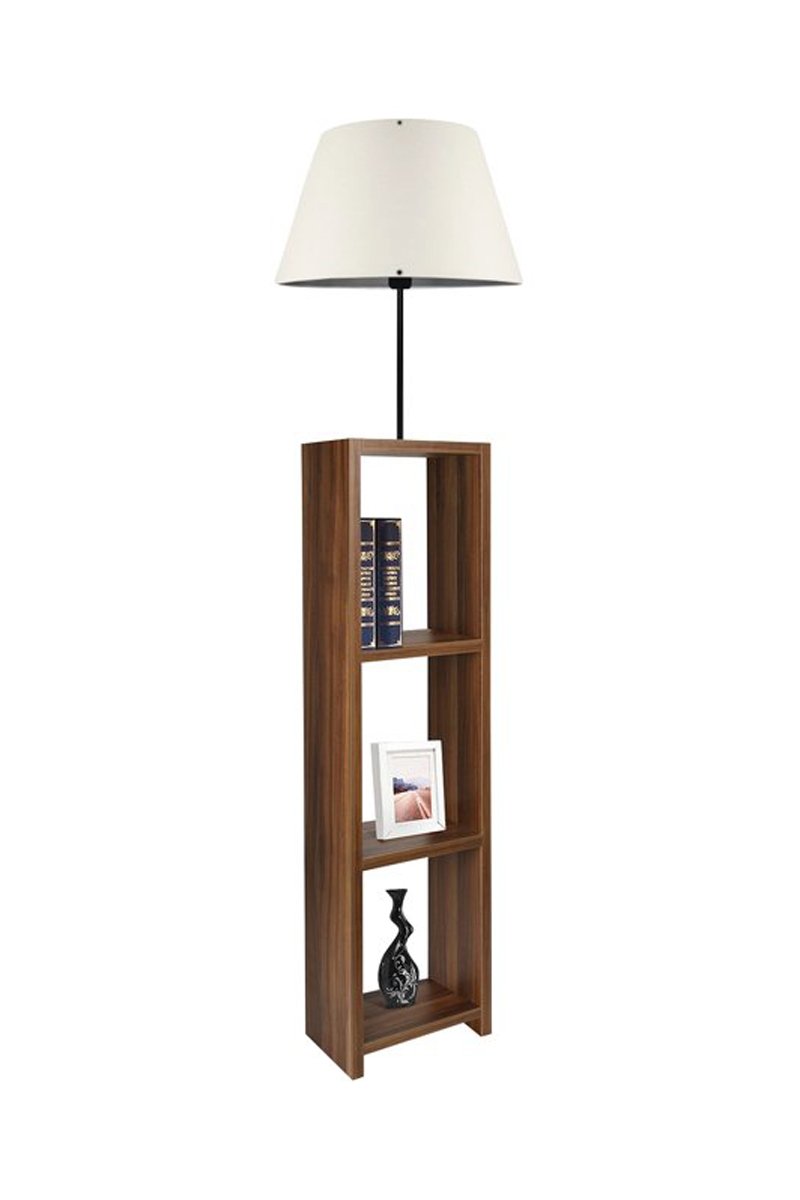 Candeeiro de pé de madeira - Creme e natural - 60 W