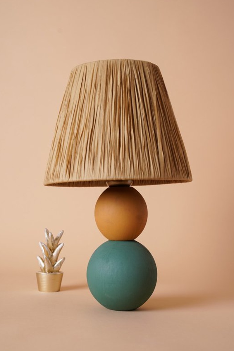 Candeeiro de mesa em madeira YL489 - Azul e bege